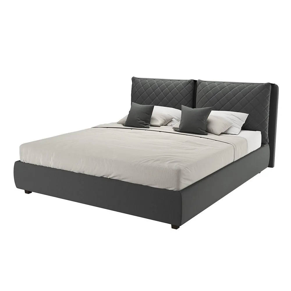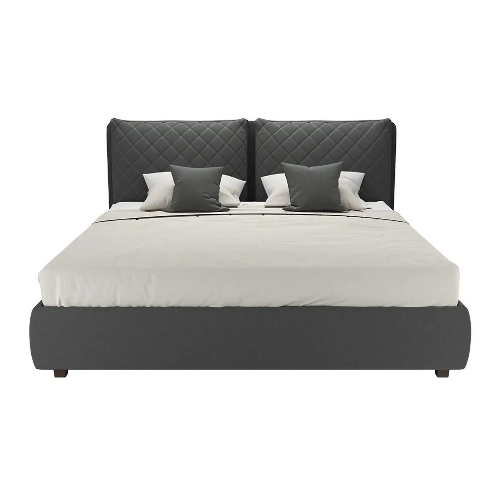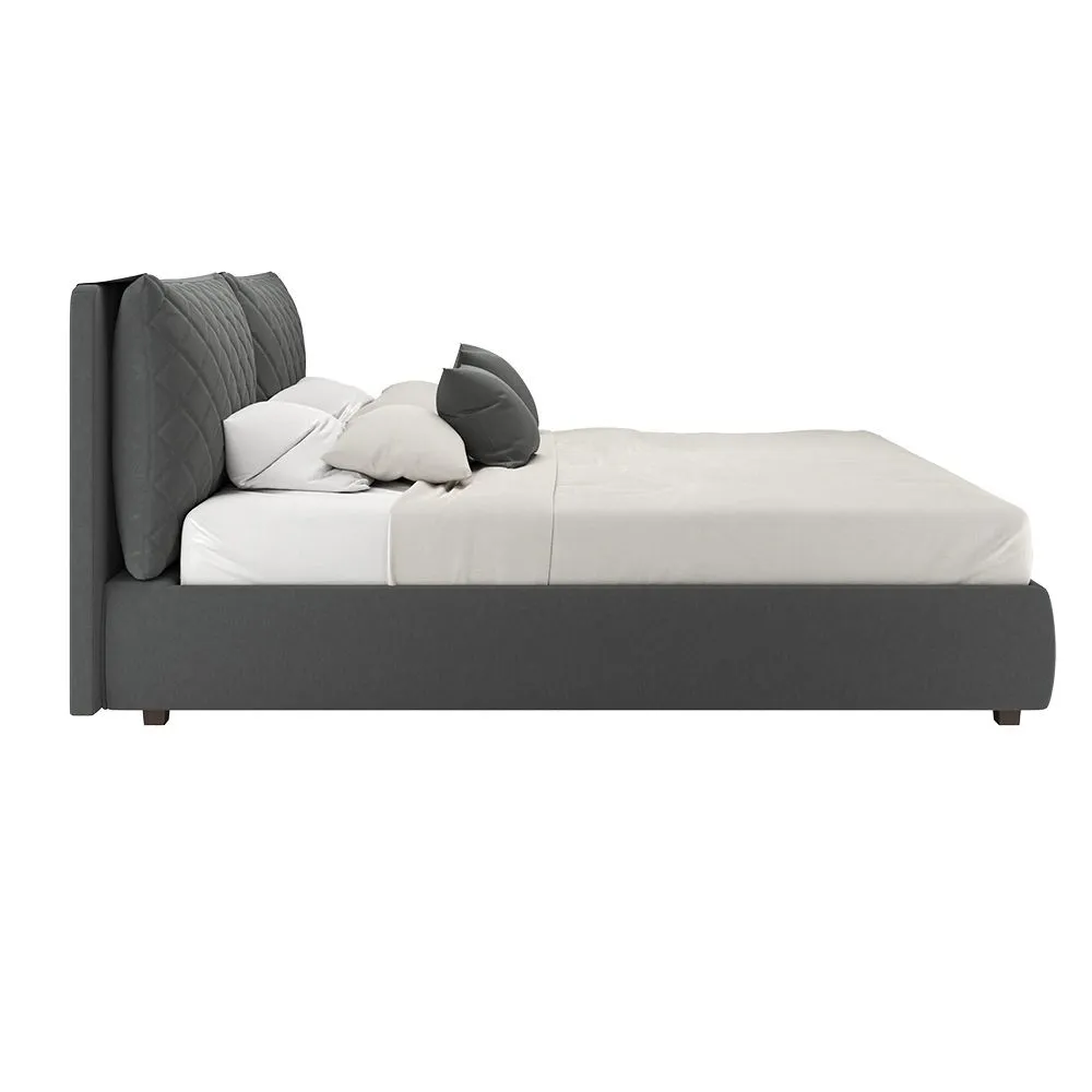 Кровать двуспальная мягкая DIONISIA 180х200, с подъемным механизмом, ящиком для хранения и съемными подушками с прострочкой шанель, темный орех серо
