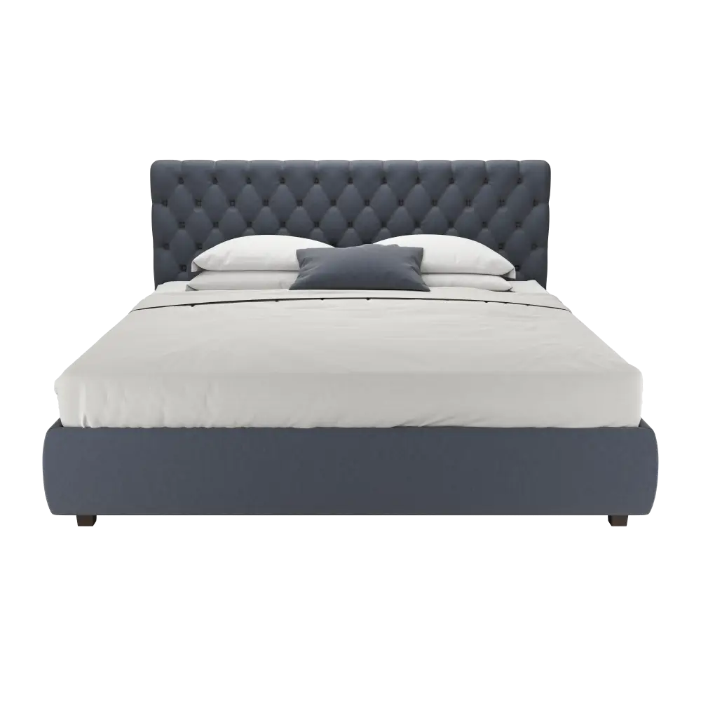 Кровать двуспальная GARDENIA, с каретной стяжкой, 180х200, темный орех сине-голубой