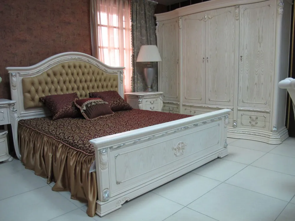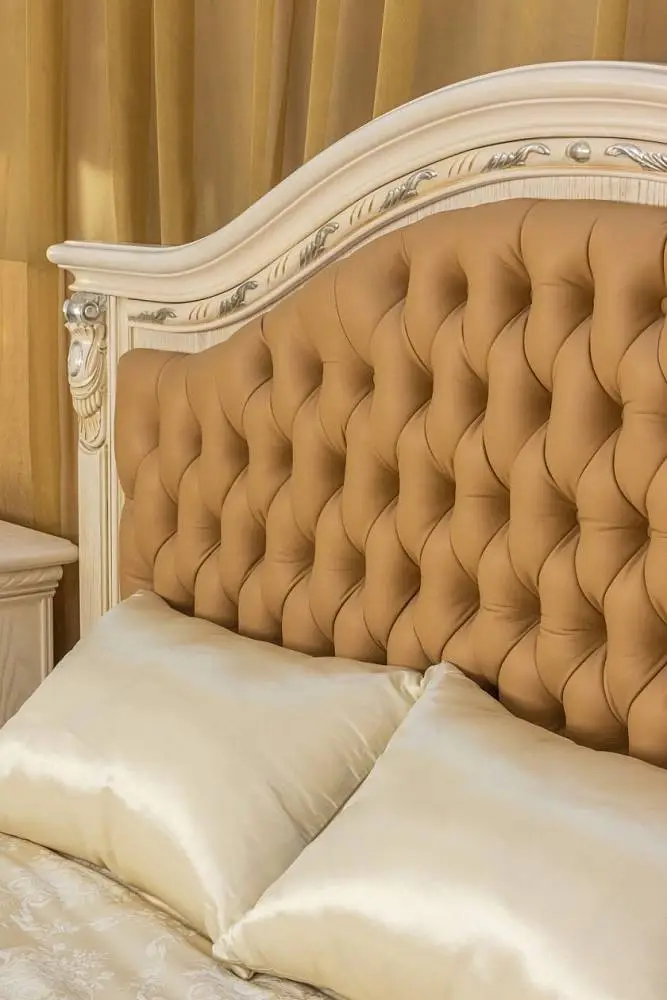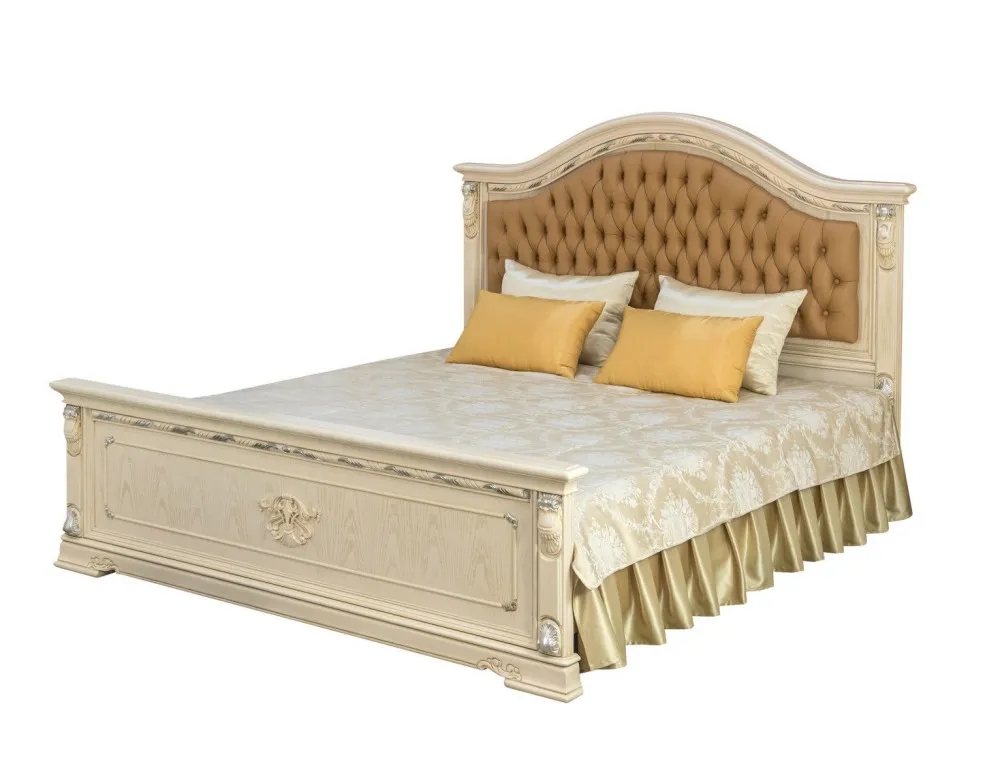 Респектабельная, эстетичная и торжественная мебель для спальных комнат Margaret , с эффектным и запоминающимся дизайном, станет богатым и почетным украшением домашнего интерьера, наполнив его уютом, роскошью и практичностью. Изголовие декорировано натуральной кожей с каретной стяжкой. Эта высококачественная, уникальная, добротная и популярная коллекция, обладает элитной внешностью и элегантным дизайном. Модель украшают разнообразные художественные резные элементы ручной работы, благородные оттенки, плавные линии, природная красота древесины и изящные формы. Натуральная и экологически чистая мебель Margaret разрабатывалась лучшими европейскими дизайнерами и исполняется по итальянским технологиям производства.