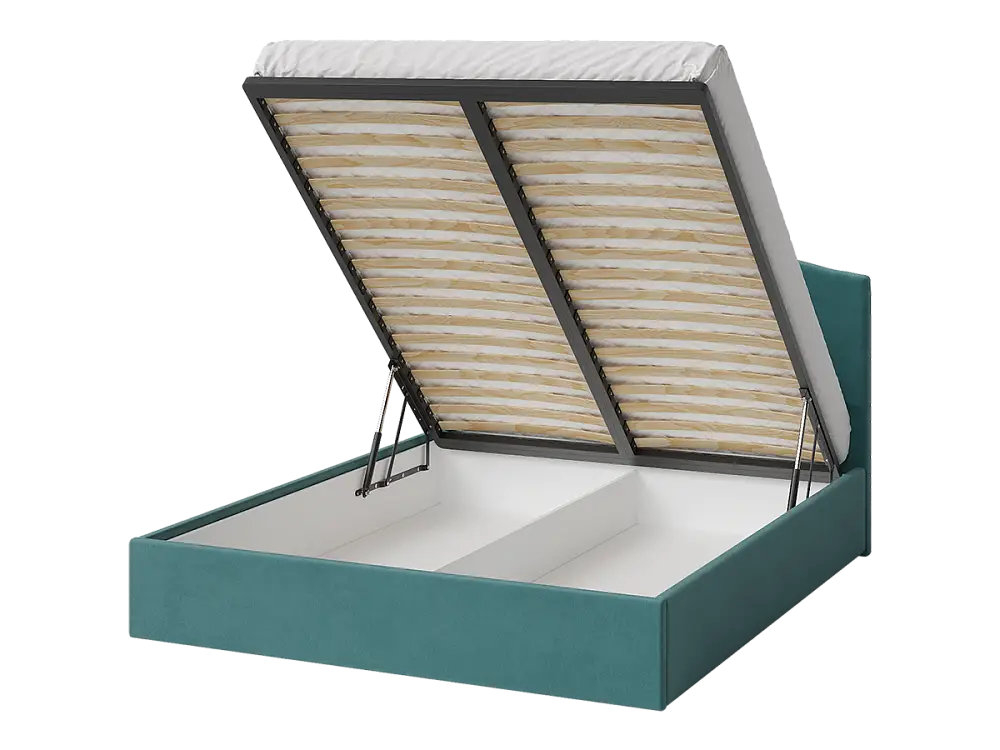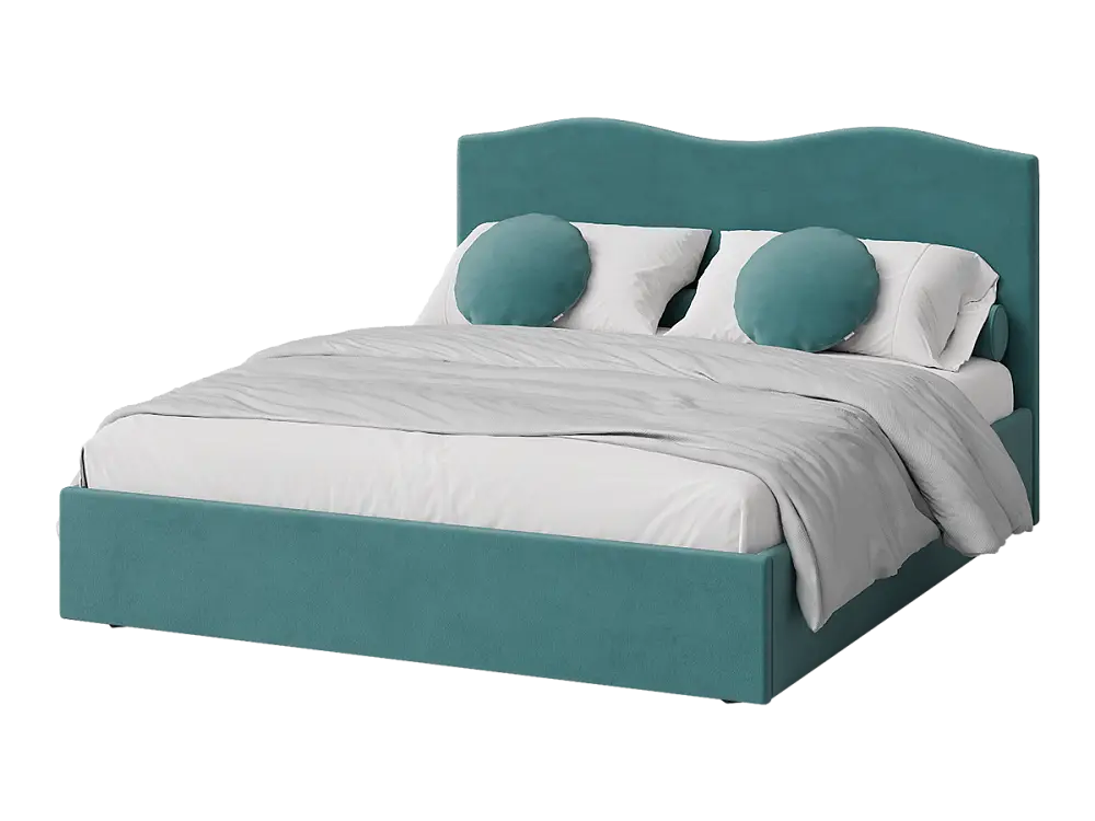 Кровать двуспальная мягкая ONDUTTO, изголовье волна 160х200 с подъемным механизмом и ящиком для хранения бирюзовый