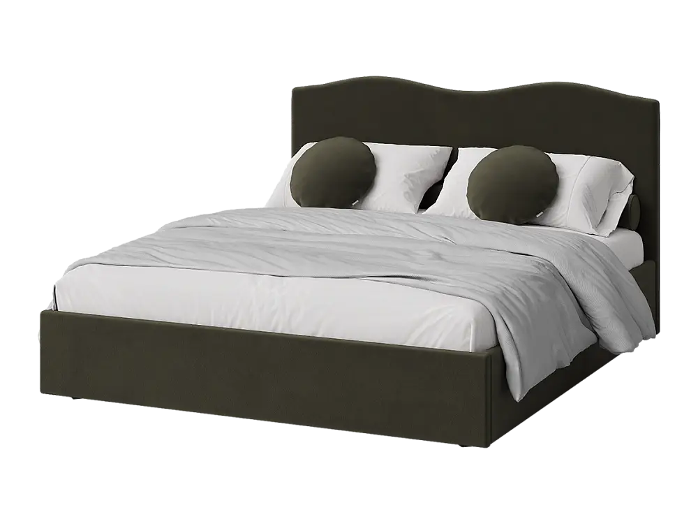 Кровать двуспальная мягкая ONDUTTO, изголовье волна 160х200 с подъемным механизмом и ящиком для хранения болотный