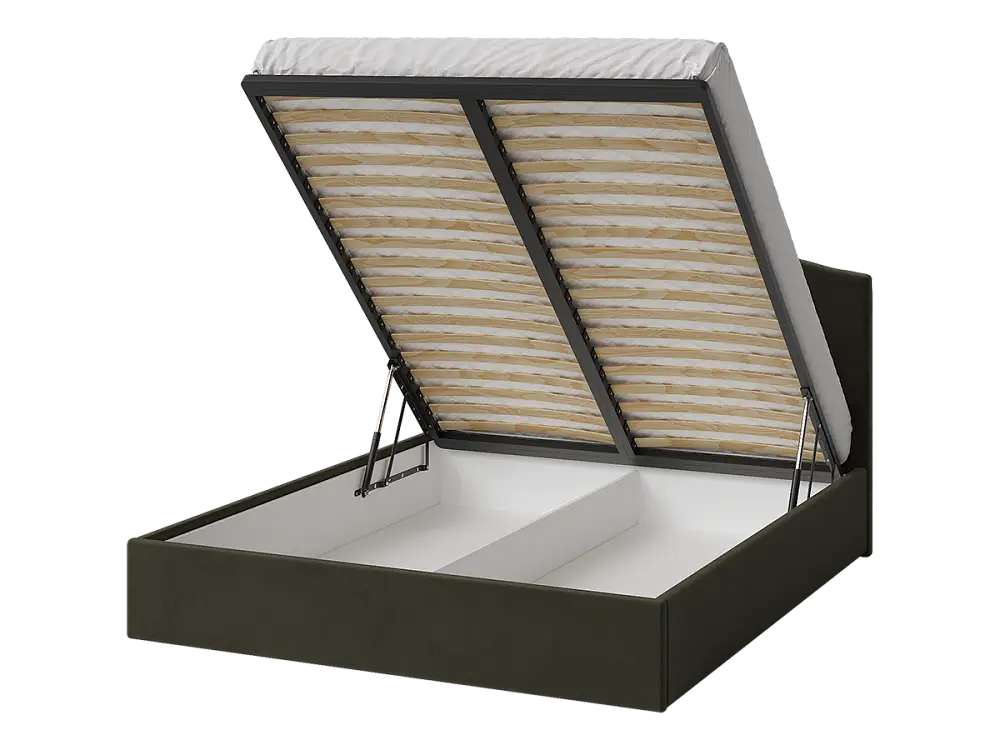 Ортопедическое основание изготовлено из прочной березовой фанеры. Подъемный механизм оснащен газлифтами, позволяющими легко и бесшумно открывать и закрывать спальное место. Вместительный бельевой ящик предоставляет достаточно пространства для хранения