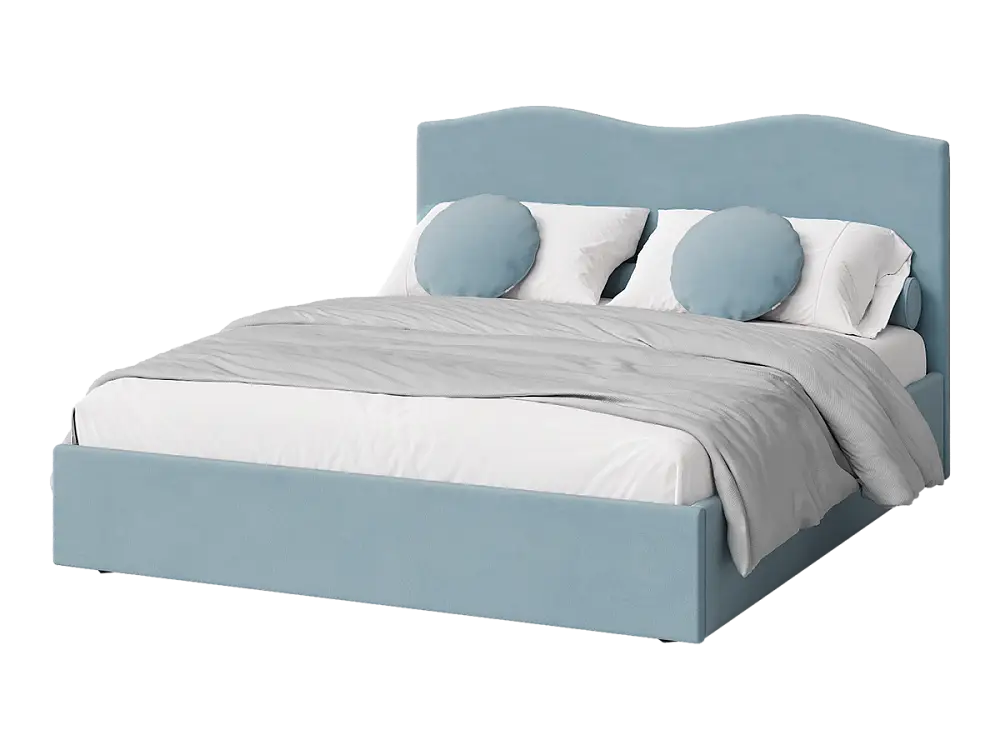 Кровать двуспальная мягкая ONDUTTO, изголовье волна 160х200 с подъемным механизмом и ящиком для хранения голубой