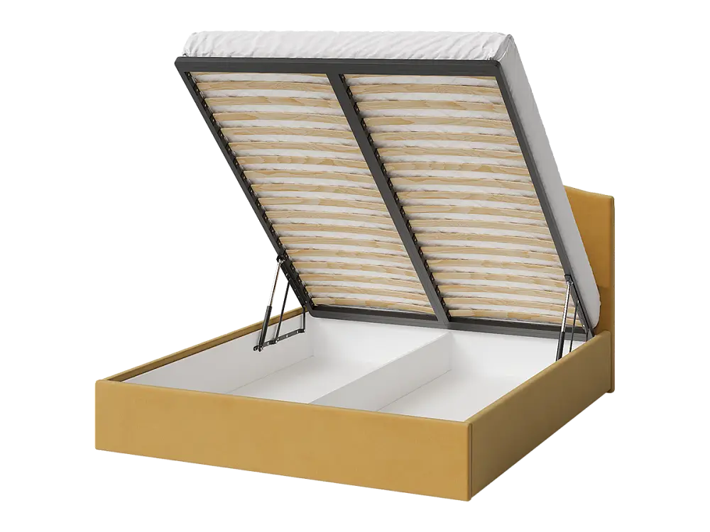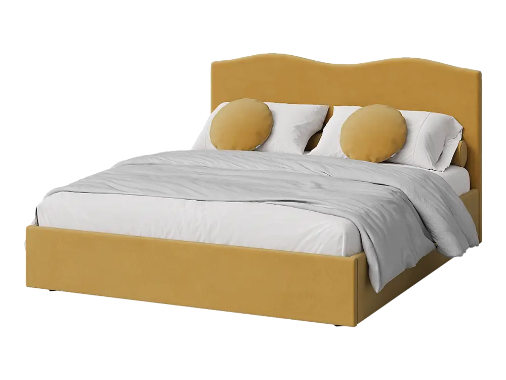 Кровать двуспальная мягкая ONDUTTO, изголовье волна 160х200 с подъемным механизмом и ящиком для хранения горчичный