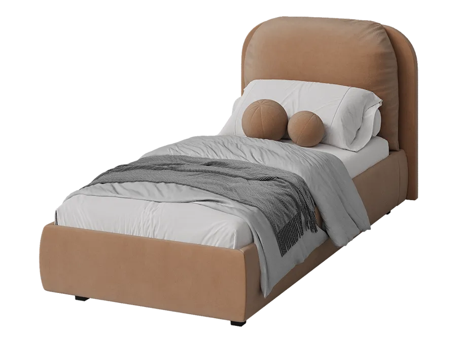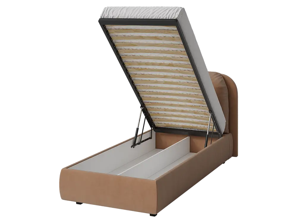 Кровать односпальная мягкая BASSIA 90х200 с подъемным механизмом, ящиком для хранения и съемной подушкой венге миндальный