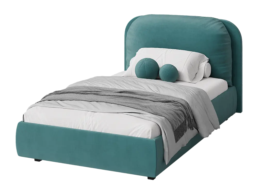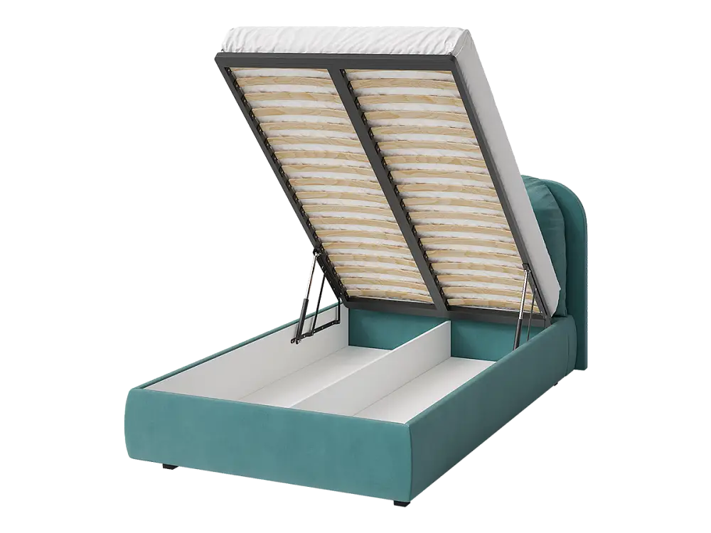 Кровать полутораспальная мягкая BASSIA 120х200 с подъемным механизмом, ящиком для хранения и съемной подушкой венге бирюзовый