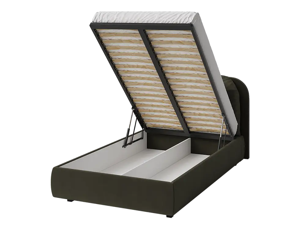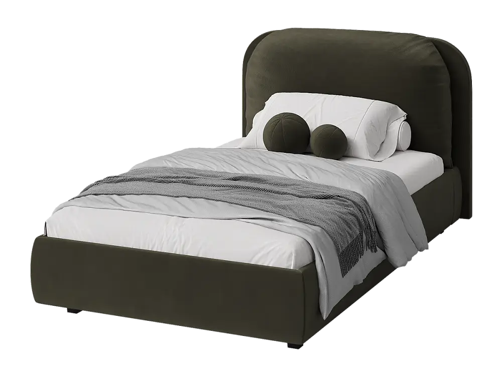 Кровать полутораспальная мягкая BASSIA 120х200 с подъемным механизмом, ящиком для хранения и съемной подушкой венге болотный