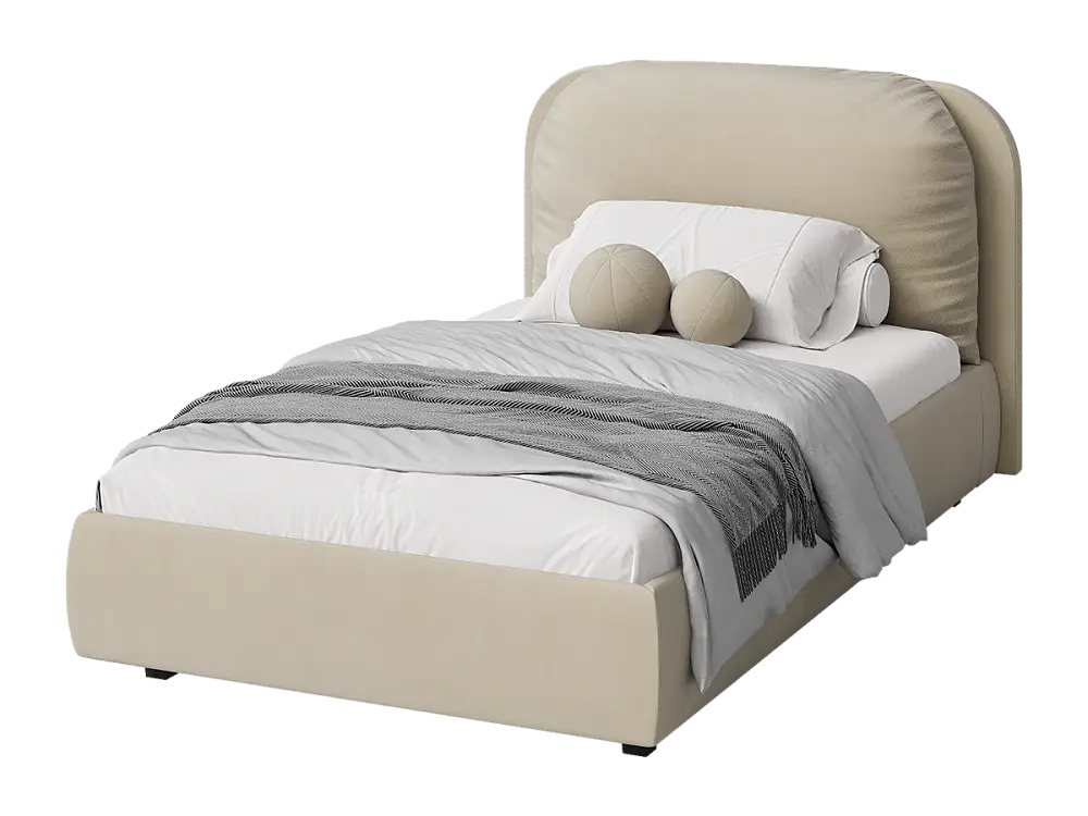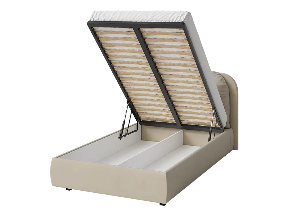 Кровать полутораспальная мягкая BASSIA 120х200 с подъемным механизмом, ящиком для хранения и съемной подушкой венге сливочный