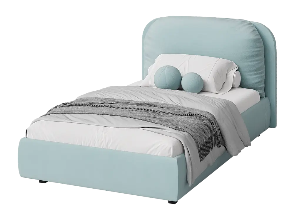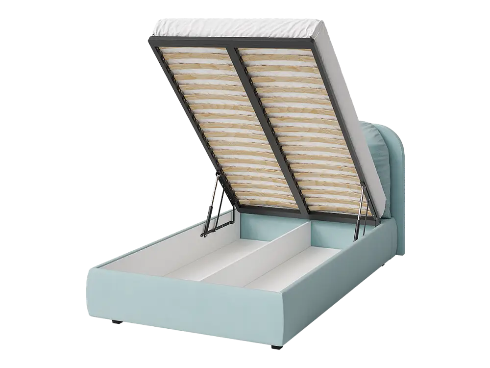 Кровать полутораспальная мягкая BASSIA 120х200 с подъемным механизмом, ящиком для хранения и съемной подушкой венге светло-голубой