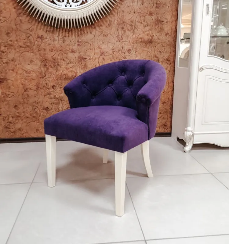 Стул-кресло ADINA максимально комфортно, его мягкие округлые формы создают настроение безмятежности и гармонии в интерьере. Спинка стула выполнена в технике каретной утяжки – это сложная и кропотливая работа. Изысканность модели ADINA читается во всем – в качественном исполнении и точно расставленных акцентах в дизайне, в сложносочиненной драпировке ткани, в том множестве миниатюрных складочек, которые мастер вручную, филигранно укладывает вокруг каждого декора-пуговки. Такое исполнение придает креслу будуарный, гламурный и роскошный вид. Безукоризненный стиль кресла ADINA всегда будут дарить вам радость и не оставят равнодушными гостей вашего дома. Каркас стула выполнен самым известным и самым надежным методом столярного мастерства – шиповым соединением, требующим высокой точности подготовки деталей, достигаемой на высокоточном лазерном станке, тогда вырезанные детали как идеальный конструктор соединяются в единую монолитную конструкцию. Ноги стула выполнены из массива бука и надежно вклеены в каркас.