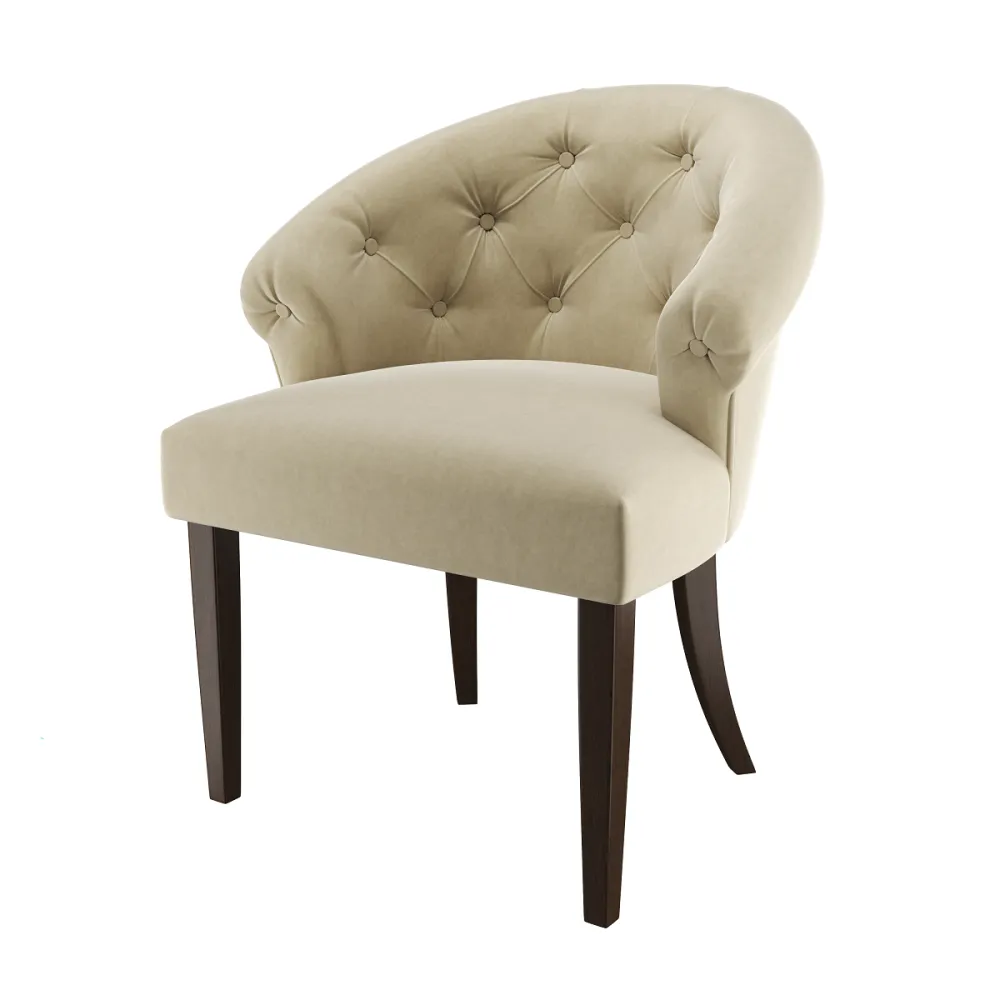 Стул-кресло ADINA максимально комфортно, его мягкие округлые формы создают настроение безмятежности и гармонии в интерьере. Спинка стула выполнена в технике каретной утяжки – это сложная и кропотливая работа. Изысканность модели ADINA читается во всем – в качественном исполнении и точно расставленных акцентах в дизайне, в сложносочиненной драпировке ткани, в том множестве миниатюрных складочек, которые мастер вручную, филигранно укладывает вокруг каждого декора-пуговки. Такое исполнение придает креслу будуарный, гламурный и роскошный вид. Безукоризненный стиль кресла ADINA всегда будут дарить вам радость и не оставят равнодушными гостей вашего дома. Каркас стула выполнен самым известным и самым надежным методом столярного мастерства – шиповым соединением, требующим высокой точности подготовки деталей, достигаемой на высокоточном лазерном станке, тогда вырезанные детали как идеальный конструктор соединяются в единую монолитную конструкцию. Ноги стула выполнены из массива бука и надежно вклеены в каркас.