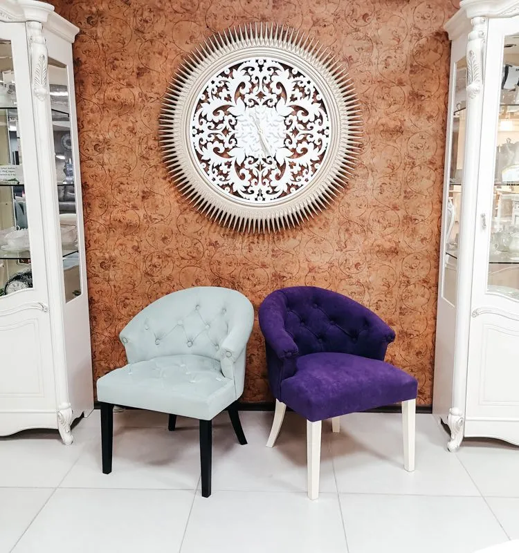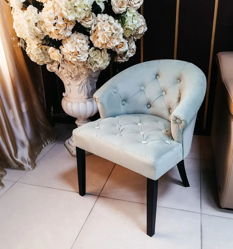 Стул-кресло ADINA максимально комфортно, его мягкие округлые формы создают настроение безмятежности и гармонии в интерьере. Спинка стула выполнена в технике каретной утяжки – это сложная и кропотливая работа. Изысканность модели ADINA читается во всем – в качественном исполнении и точно расставленных акцентах в дизайне, в сложносочиненной драпировке ткани, в том множестве миниатюрных складочек, которые мастер вручную, филигранно укладывает вокруг каждого декора-пуговки. Такое исполнение придает креслу будуарный, гламурный и роскошный вид. Безукоризненный стиль кресла ADINA всегда будут дарить вам радость и не оставят равнодушными гостей вашего дома. Каркас стула выполнен самым известным и самым надежным методом столярного мастерства – шиповым соединением, требующим высокой точности подготовки деталей, достигаемой на высокоточном лазерном станке, тогда вырезанные детали как идеальный конструктор соединяются в единую монолитную конструкцию. Ноги стула выполнены из массива бука и надежно вклеены в каркас.