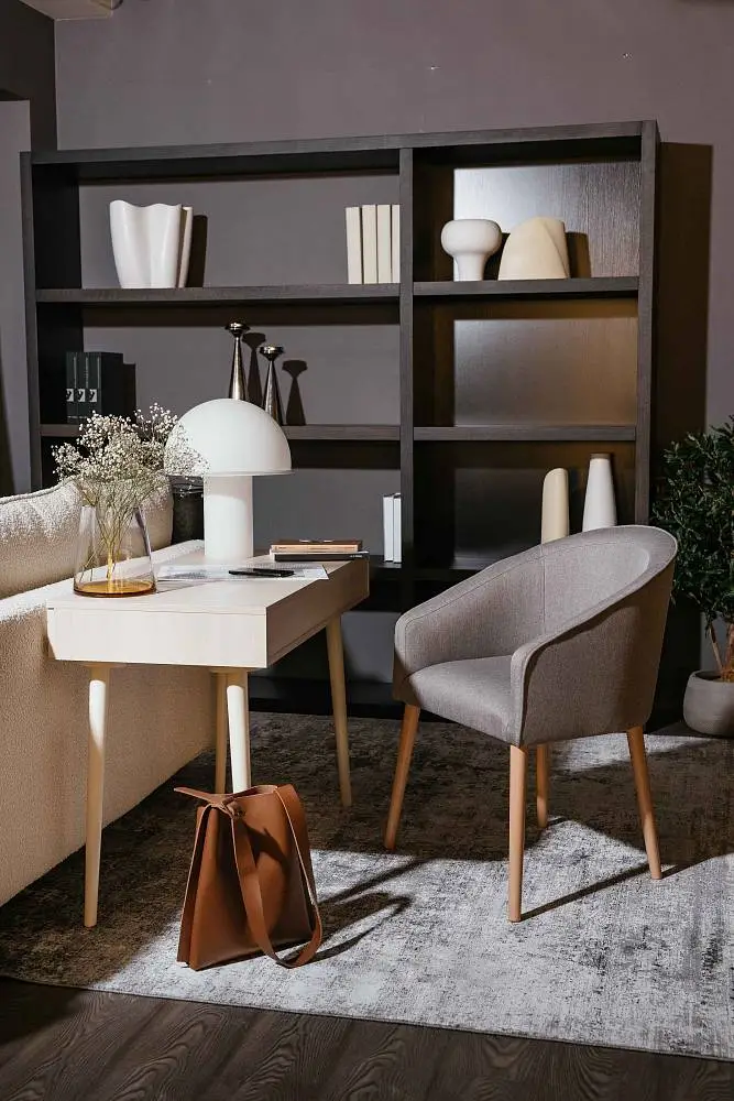 Стул-кресло ANGELICA компактный и аккуратный, его формы округлые и спокойные, а удобная спинка и мягкое сиденье созданы специально для вашего комфорта. Каркас стула выполнен самым известным и самым надежным методом столярного мастерства – шиповым соединением, требующим высокой точности подготовки деталей, достигаемой на высокоточном лазерном станке, тогда вырезанные детали как идеальный конструктор соединяются в единую монолитную конструкцию. Ноги стула выполнены из массива дерева.