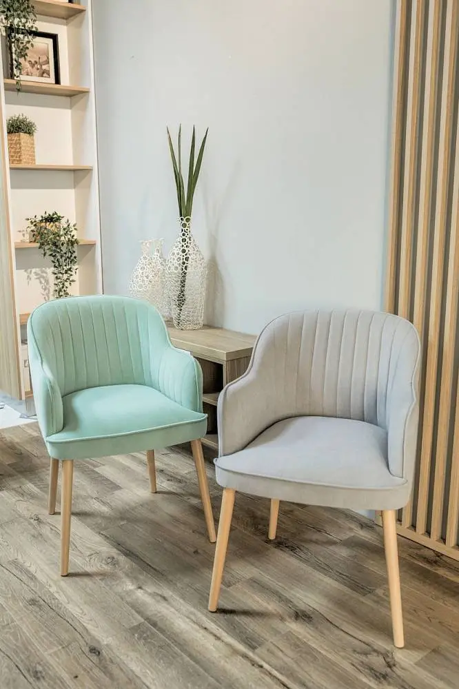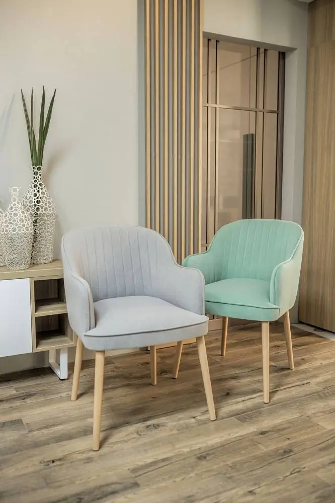 MELISA – универсальное кресло с лаконичным, стильным дизайном и мягкими формами. Благодаря своим правильным габаритам и пропорциям, кресло комфортно и эргономично, оно идеально подойдет для оформления дизайна как квартиры, загородного дома, так и отеля, ресторана. Кресло MELISA можно разместить как в спальне перед зеркалом, так и в кухне-гостиной за большим семейным столом или рядом с журнальным столиком. Дизайн и экстерьер кресла предоставляет множество вариантов декорирования и обивки. Каркас кресла выполнен самым известным и самым надежным методом столярного мастерства – шиповым соединением, требующим высокой точности подготовки деталей, достигаемой на высокоточном лазерном станке, тогда вырезанные детали как идеальный конструктор соединяются в единую монолитную конструкцию. Ноги стула выполнены из массива бука и так же шиповым методом надежно вклеены в каркас.