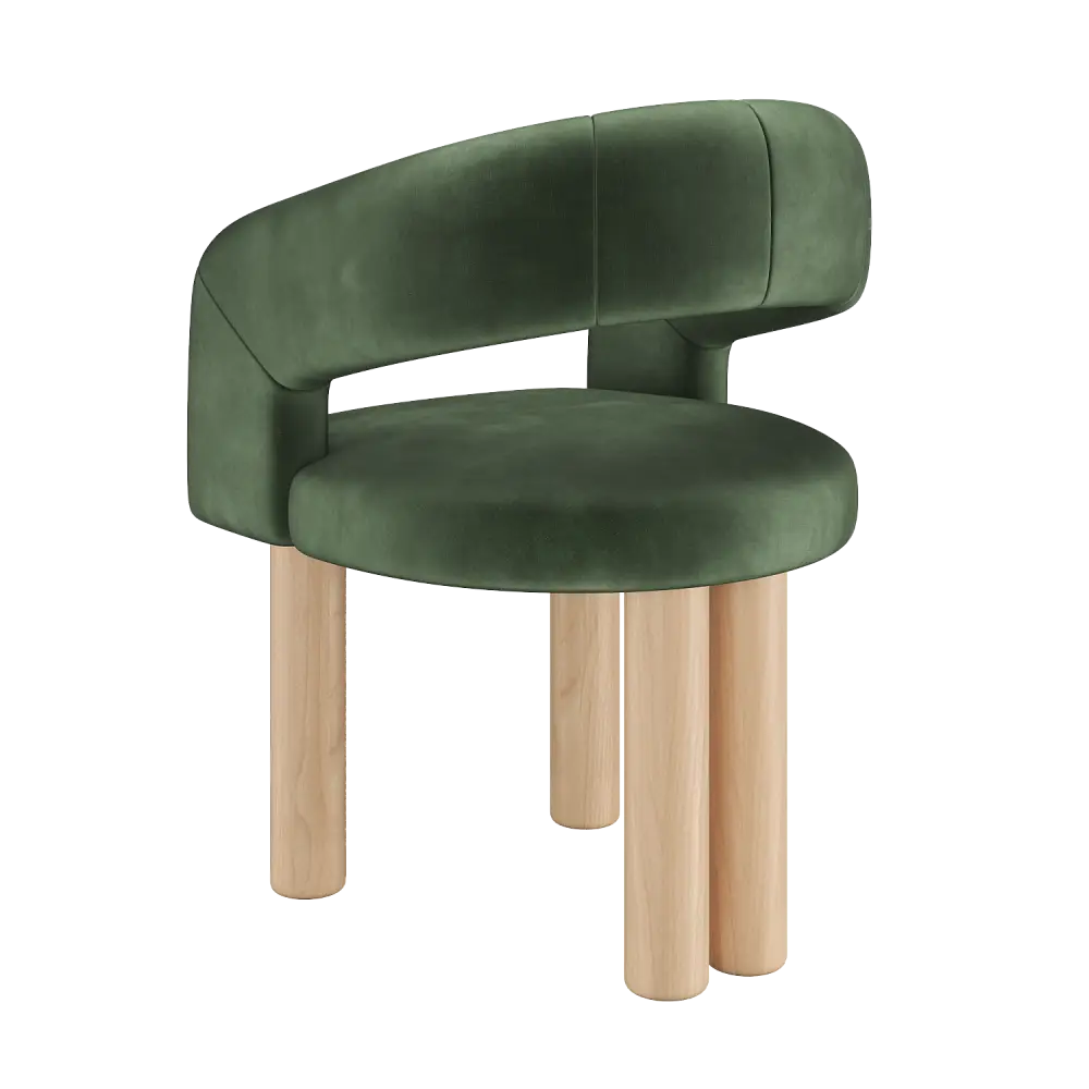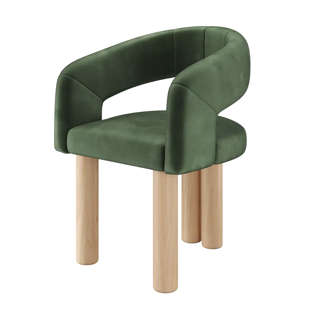Стул-кресло мягкий PECOLA, тон натуральное дерево, темно-зеленый