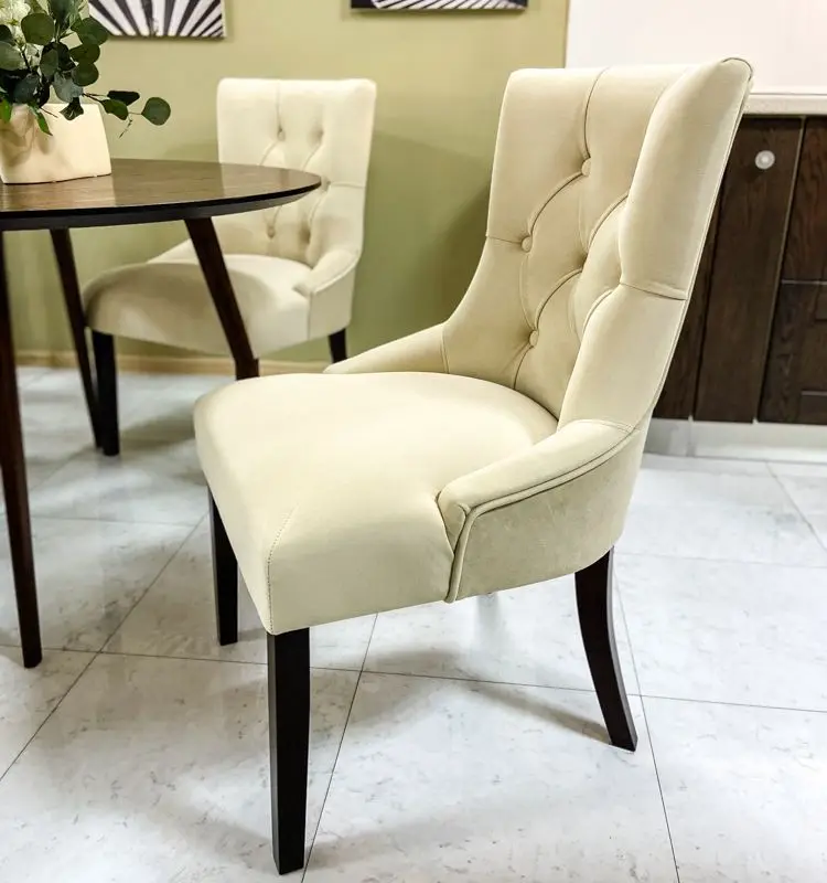 Стул ASHLEY в последнее время стал очень популярной моделью. Эта популярность основывается на предпочтениях покупателей, которые по достоинству оценивших сдержанный, и в тоже время, торжественный дизайн стула в сочетании со сложной декоративной отделкой и возможностью экспериментировать с материалами обивки. Для стула ASHLEY характерны высокие эргономические свойства, обусловленные грамотно продуманной конструкцией и высочайшим качествами материалов и исполнения. Этот стул удобный и компактный и, поэтому, многофункциональный – его легко можно представить, как в интерьере квартиры, дома, так и в зале кафе или ресторана. Каркас стула выполнен самым известным и самым надежным методом столярного мастерства – шиповым соединением, требующим высокой точности подготовки деталей, достигаемой на высокоточном лазерном станке, тогда вырезанные детали как идеальный конструктор соединяются в единую монолитную конструкцию. Ноги стула выполнены из массива бука и так же шиповым методом надежно вклеены в каркас.