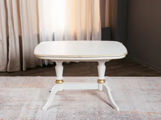 Стол обеденный раздвижной СОФИЯ-2 (1200-1500)х800,МДФ эмаль белая , патина золото