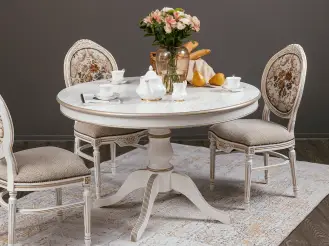 Стол обеденный раздвижной СОФИЯ-2 (1200-1500)х800,МДФ эмаль белая , патина золото