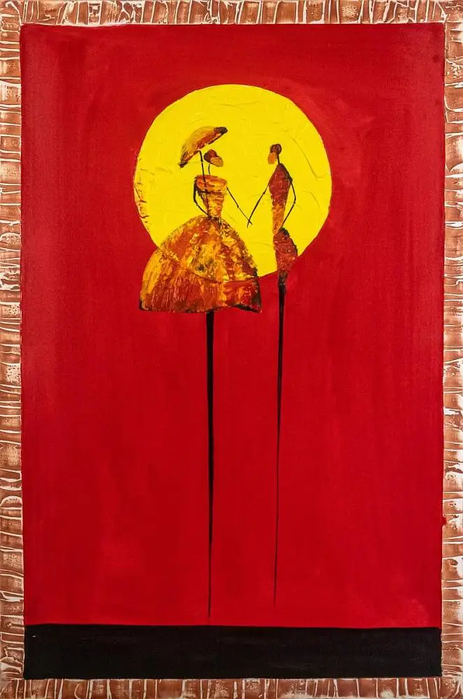 Картина Силуэты мужчины и женщины на закате абстракция