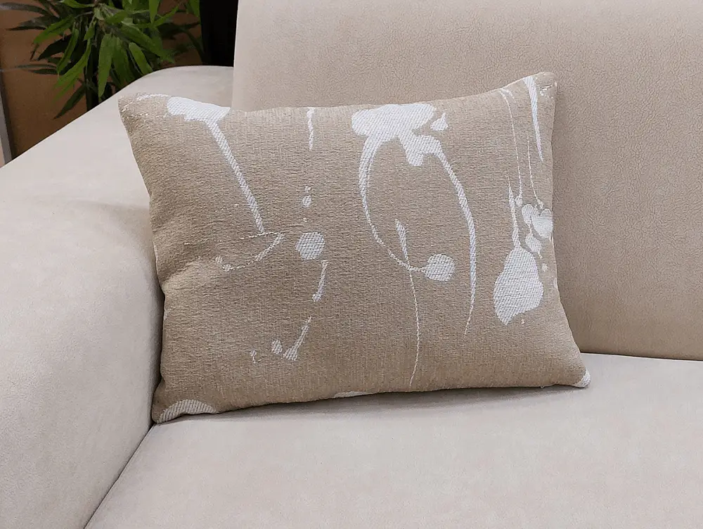 В основе подушки современный материал - синтепух (пух-шар). Синтепух - мягкий, воздушный материал. Синтепух находится во внутреннем чехле из спандбонда, а сверху надевается внешний, тканевый. Внешний чехол из мебельной ткани, оснащен молнией.