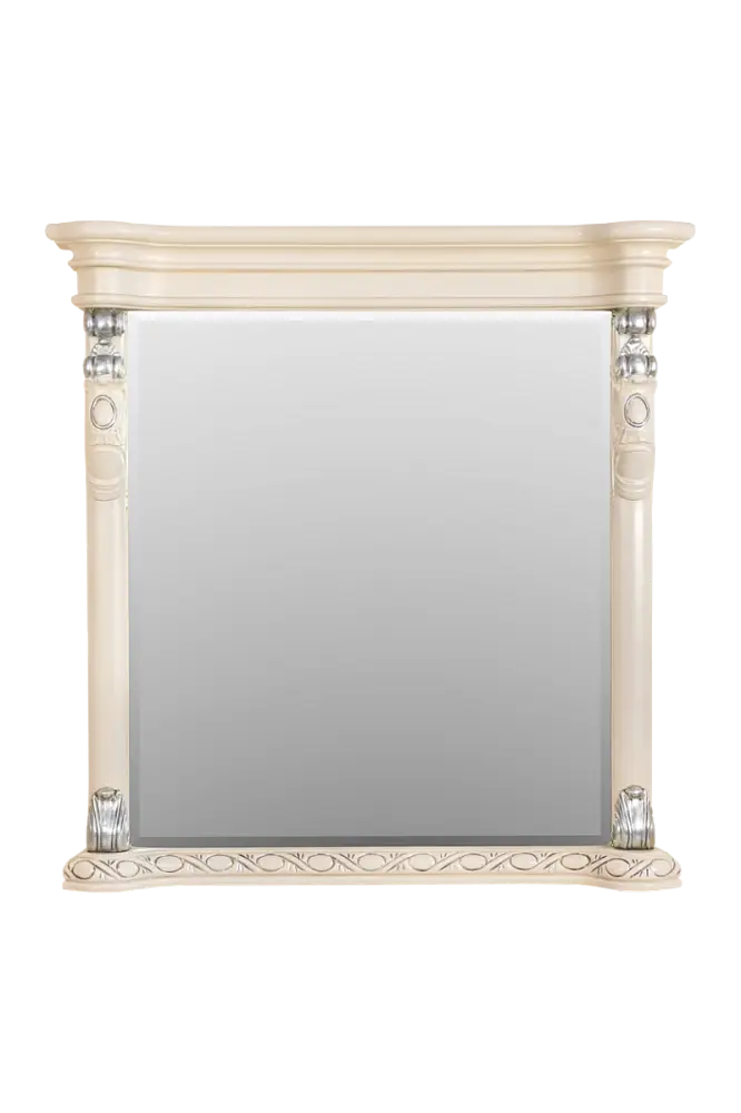 Зеркало к туалетному столику Margaret создаст роскошную и романтичную атмосферу дворцовой Франции, станет украшением интерьера, наполнив его уютом и роскошью. Зеркала выполнены из массива северной березы в шпоне ясеня, покрыты эмалью, патиной. Зеркало выполнено без эффекта искажения отражения. Оклад из резного массива, колоны из березы, по периметру обработано по технологии шлифования. Широкий фацет подчеркивает классический стиль. Вся мебель коллекции выполнена из массива северной березы, в том числе скрытые элементы. Мебель из натурального дерева не выделяет вредных веществ и имеет долгий срок службы. Каждая деталь изделия вырезана вручную, а патина из натурального серебра и нежные изящные линии придают изделиям особенно элегантный и роскошный вид. Дизайн зеркал коллекции Margaret исполняется в классическом стиле по строгим итальянским технологиям. Разнообразие мебели поможет обустроить любые жилые квадратные метры: гостиную, кухню столовую, кабинет, спальню.