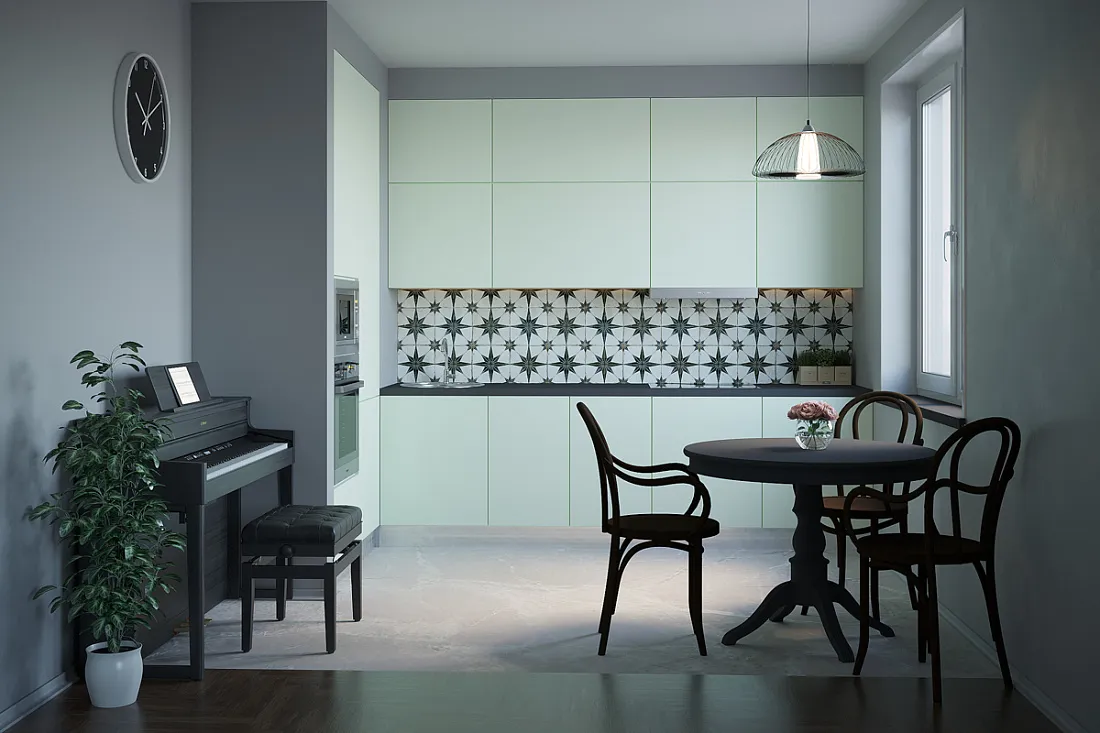 Вы можете узнать необходимую информацию о модели кухни, такие как: материал, цвет, покрытие.